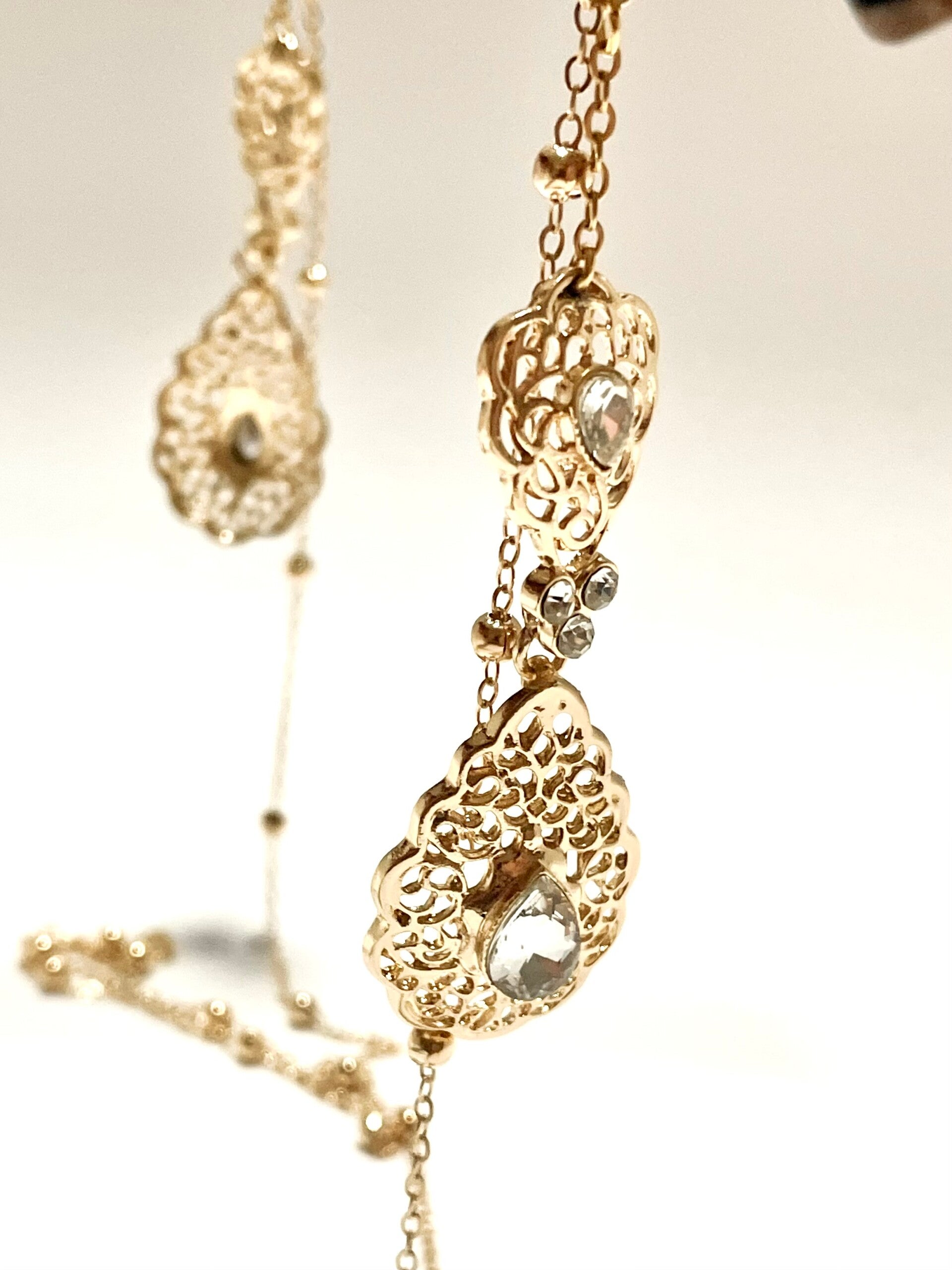 Chaine dorée en acier inoxydable et bijoux cristal blanc